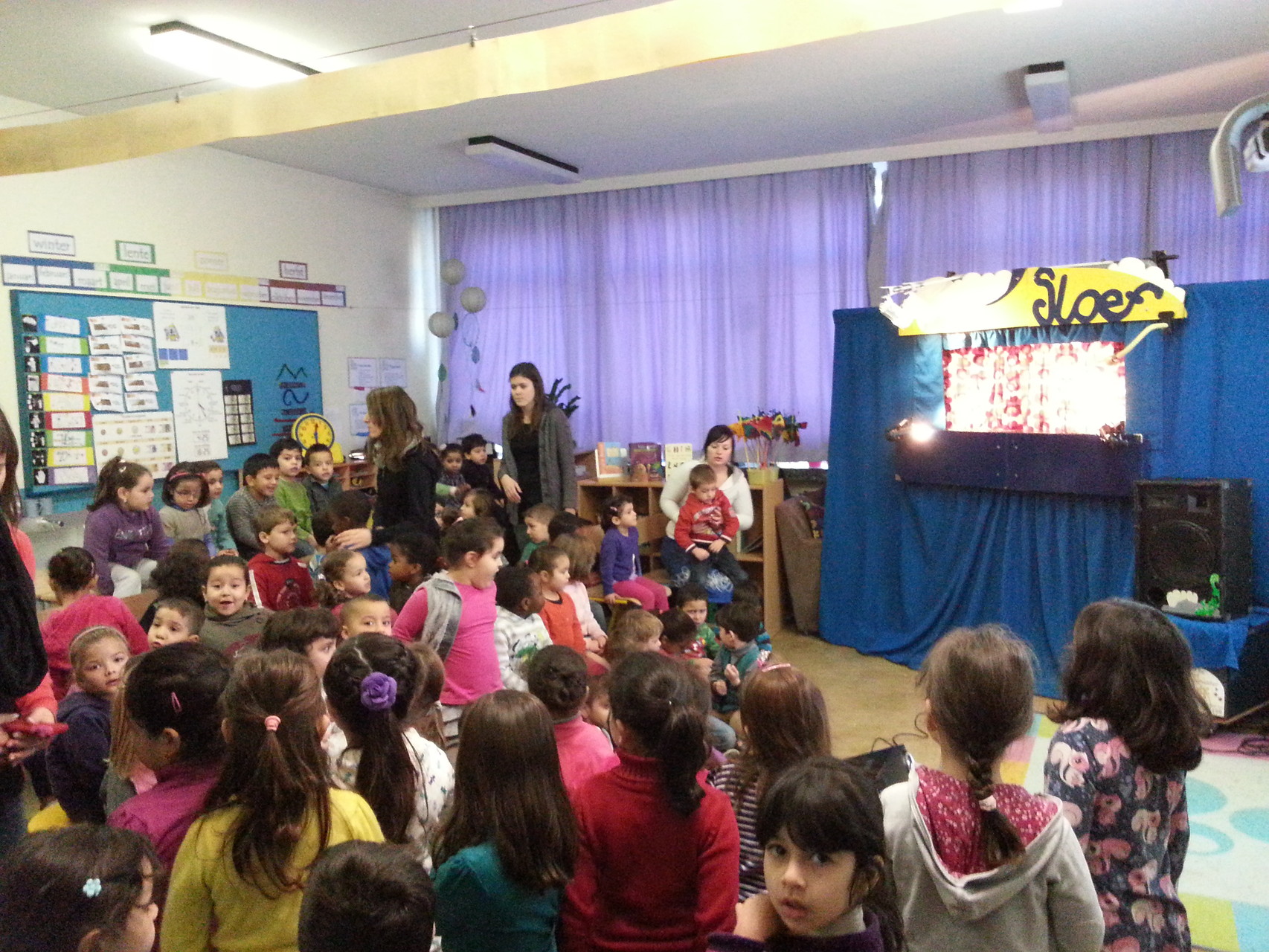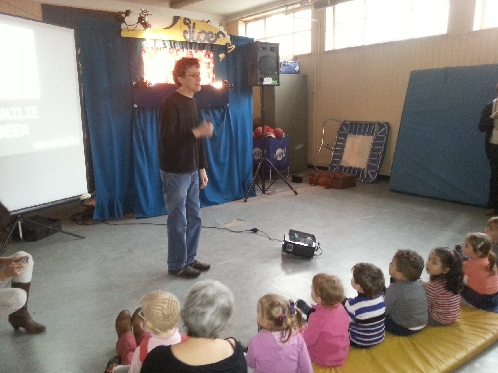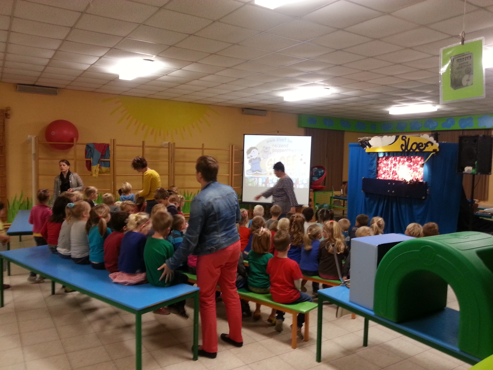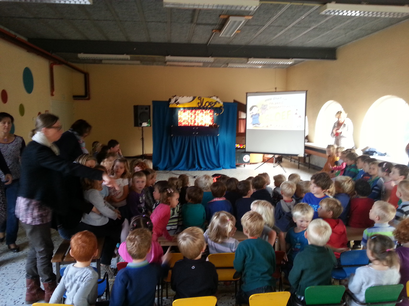 Sloef maakte hiervoor gebruik van handpoppen. De ‘magische sfeer van weleer’ maar met een snuifje vernieuwing! Interactie tussen poppen en publiek! Ook elke keer een leuk meezingliedje!